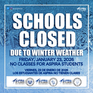 Due to extreme cold weather, all Aspira of Illinois schools will be CLOSED on Friday, January 23, 2026 to ensure the safety of our students, families, and staff.